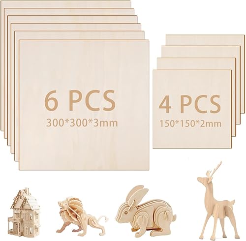10 Fogli Compensato di Legno di Tiglio, Pannelli Compensato 30cm x 30cm x 3mm, 15cm x 15cm x 2mm, Fogli di Legno di Balsa per Artigianato Fai da Te Pittura Incisione Modellismo