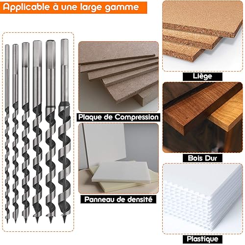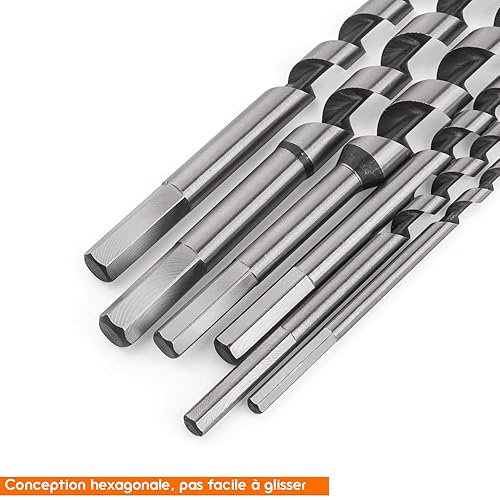 Starvest - Set di 6 punte per legno, 230 mm, punte in legno esagonale, acciaio al carbonio, diametro 6/8/10/12/14/16 mm