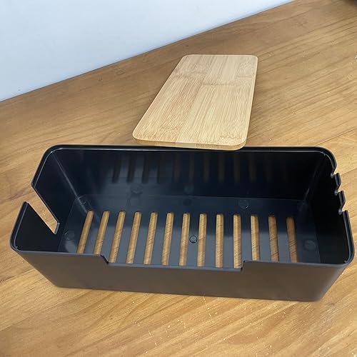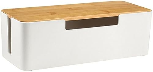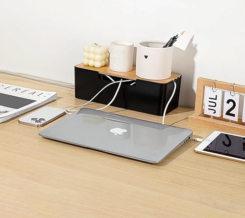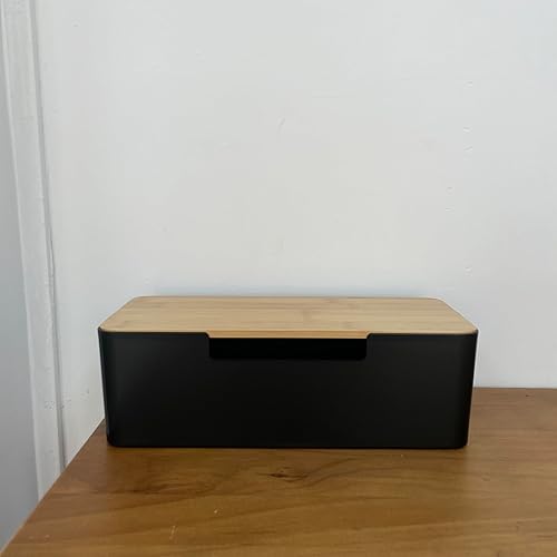 Scatola organizzatrice per cavi in ABS con coperchio in legno, scatola per la gestione dei cavi per le prese di corrente o le protezioni da sovratensione (Nero)