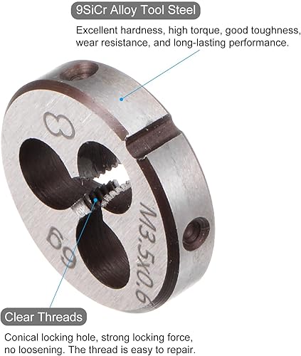 2pz Filiere a Filettare Rotondo, Filettatura Metrica M3,5 x 0,6 (Destra), Utensile di Riparazione in Acciaio Legato per Taglio Viti