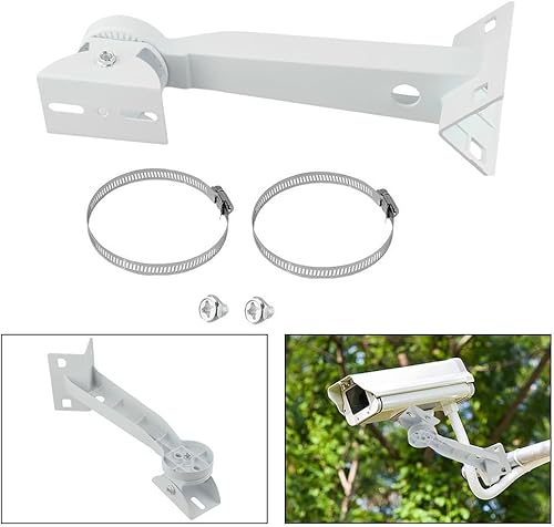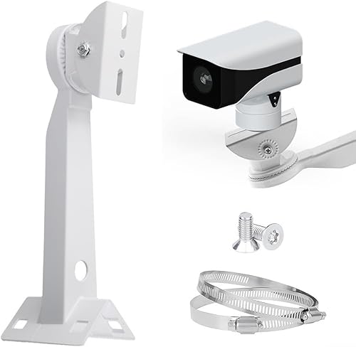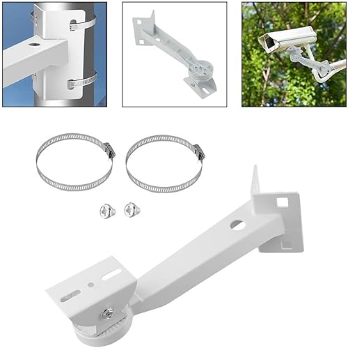 Angolo di montaggio per telecamera con montaggio su palo, staffa di montaggio per palo della fotocamera, montaggio angolare con 2 anelli regolabili per telecamere CCTV, bianco