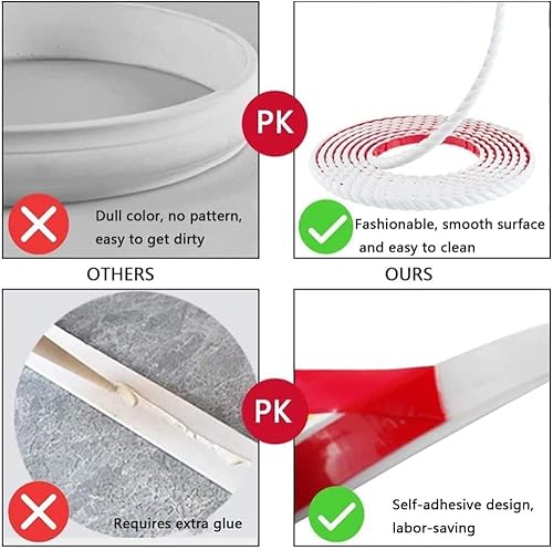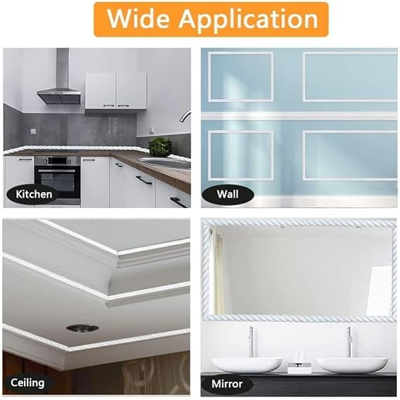 Bordo autoadesivo in PVC, 5 m, modanatura flessibile, striscia decorativa per armadi, porte, cornici degli specchi, decorazione per mobili, intonaco, soffitto, parete di sfondo (argento, 10 mm)