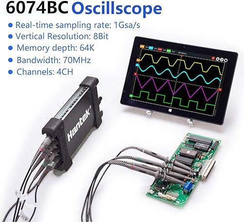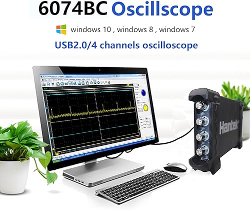 Hantek 6074BC, oscilloscopio a memoria digitale con base USB, 4 CH, 70 MHz, banda larga