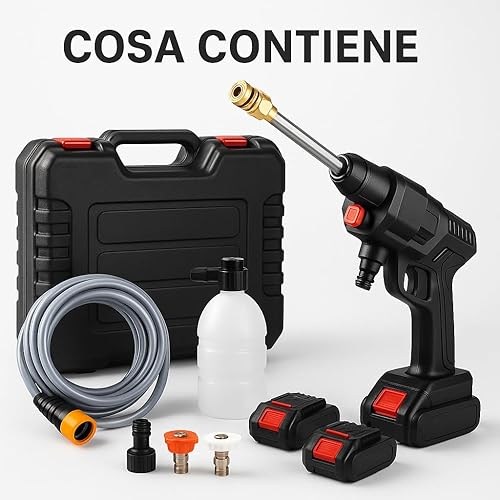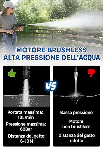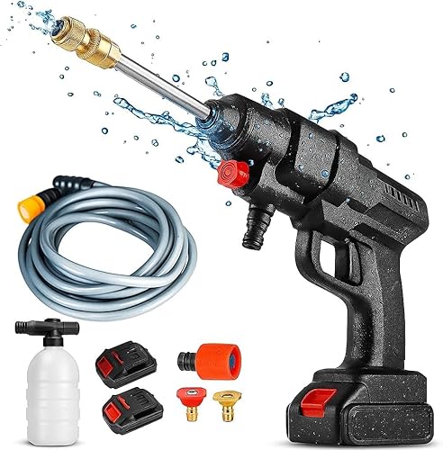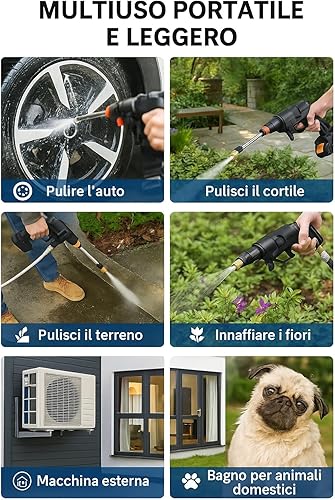 Idropulitrice a Doppia Batteria 48V 8000Mah, Ugello 6 in 1, Idropulitrice Portatile con 2 Batterie e Tubo da 5M, Pulitore ad Alta Pressione Senza Fili per Auto, Giardino, Pavimenti e Esterni