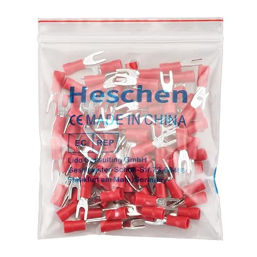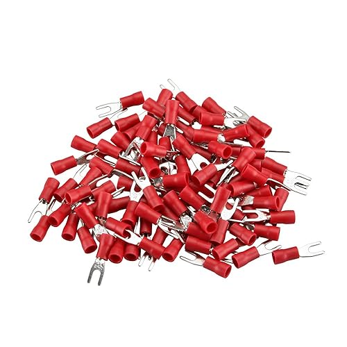Connettori a forcella per collegare fili isolati, per crimpaggio terminali SV1.25-3, dimensione bullone #4, per cavi di 0,5-1,5 mm² (22-16 AWG), colore rosso, 100 pezzi
