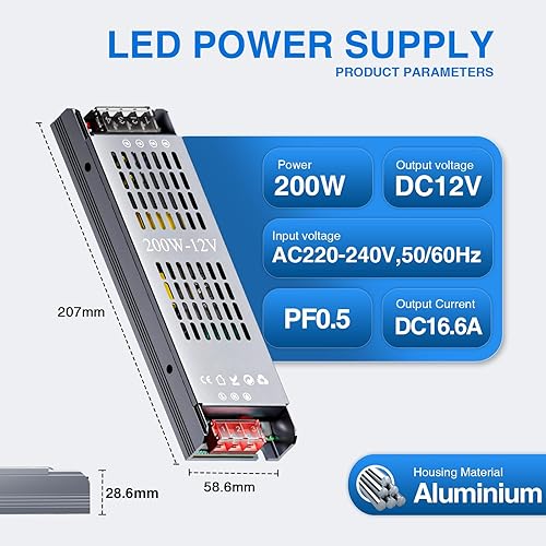 Alimentatore LED 24V 200W Ultra Sottile Dimmerabile 4 Livelli, Trasformatore 220V AC a DC 8.3A, Driver LED a Tensione Costante per Striscia (24V, 200, Watt)
