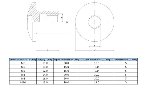 10 dadi a testa tonda a testa tonda M8 20 x 16