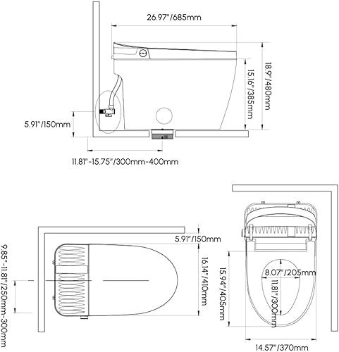 Smart bidet WC con bidet integrato, sedile WC intelligente bidet riscaldato bidet sedile WC auto scarico e coperchio soft-close, igienico stile giapponese WC con display a LED e telecomando