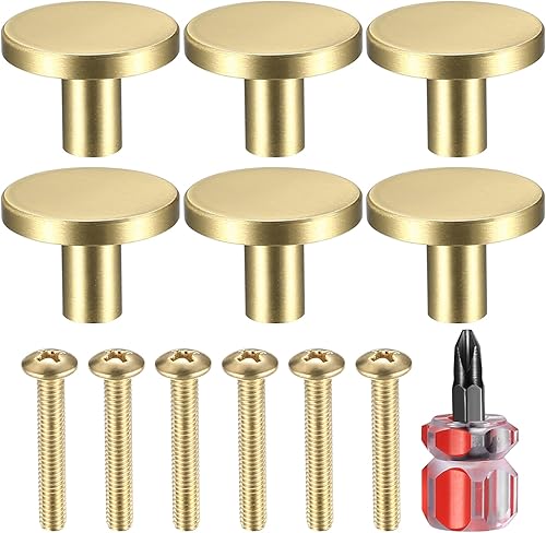HAOCHEN 8 Pz Ottone Manopole per Mobili, Pomelli per Cassetti, Pomelli a Foro Singolo, Maniglia Tonda, Pomolo per Porte Armadi, Credenze, con Viti e un Cacciavite - 20 * 23 mm/Oro