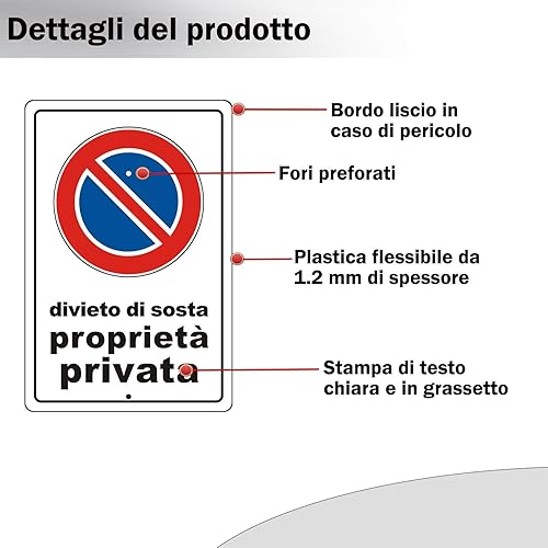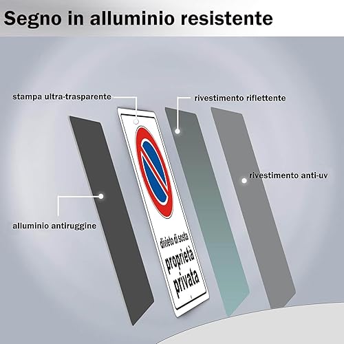 Cartello Divieto di Sosta Proprietà Privata con Staffa in Alluminio Cartello Divieto di Sosta 20cm x 30cm Resistente UV Facile da installare