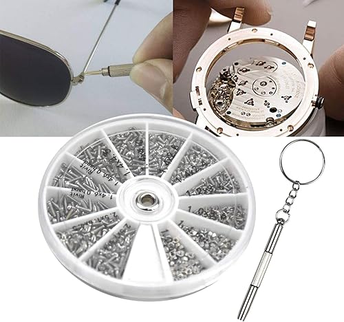 Kit Riparazione Occhiali, 1000pz Piccole Viti Dadi Assortimento in Acciaio Inox con Cacciavite e Pinzette, Occhiali Strumento di Riparazione, Viti per Occhiali Kit per Occhiali da Sole Orologi