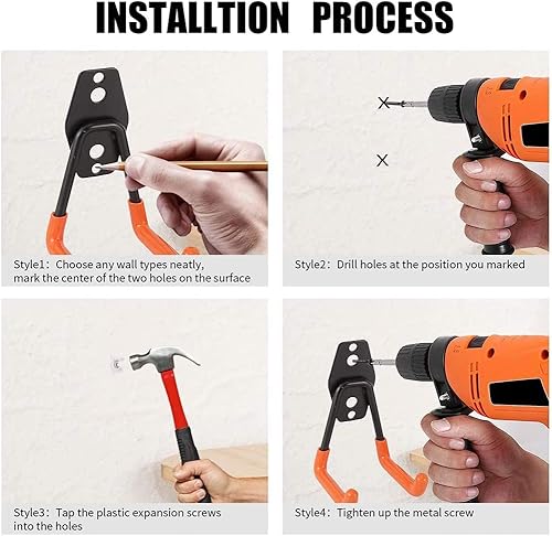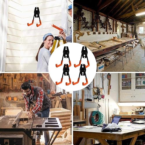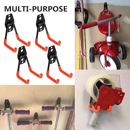 Ganci per Garage, Confezione da 4 Ganci di Stoccaggio per Garage Ganci per Appendere a Parete con Supporto Resistente, Supporto per Organizer per Attrezzi da Parete con Rivestimento Antiscivolo