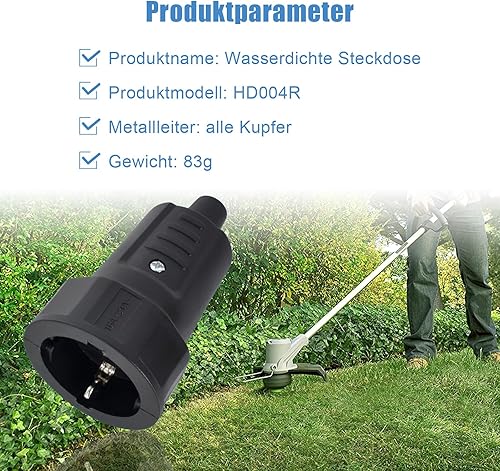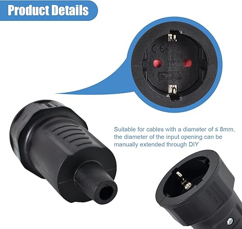 3 Pezzi Presa Volante Schuko, Giunto Protettivo in Gomma con Protezione Antipiega, Presa Schuko Femmina Giunto in Gomma 250 V 16 A Senza Cavo Nere Impermeabili in PVC con Doppio Contatto Protettivo