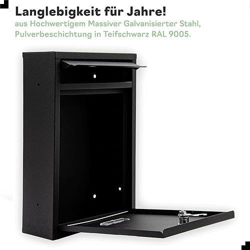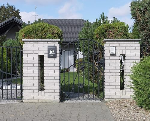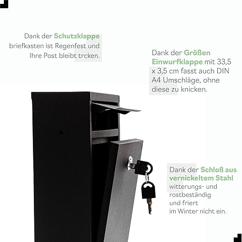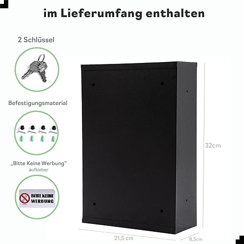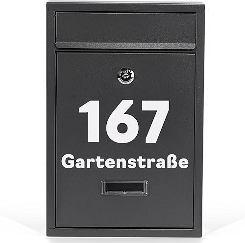 Gustav Cassetta delle lettere piccola in grigio antracite (RAL 7016) personalizzata con nomi e numeri civici, con adesivo 'Bitte Keine Werbeung'