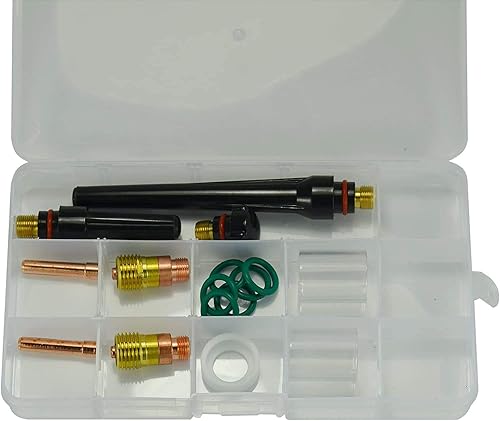 RIVERWELD Lente per gas tozza TIG 17GL116 10N23S (1,6 mm) 17GL332 10N24S (2,4 mm) Coppa in vetro isolante #10 (16 mm) Isolanti 17GLG20 Tappo posteriore 57Y02 per WP 17 18 26 Torcia per saldatura 16pz