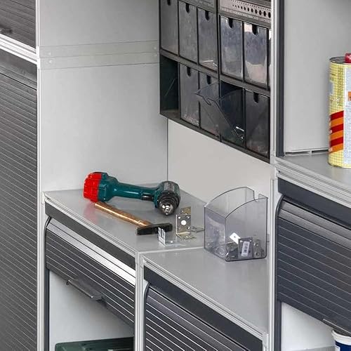 Briconess.com Armadio modulare per Garage in PVC Resina con serranda Scorrevole Verticale 2 Ripiani Ideale Anche per Esterni Dimensioni 62,5x35x84,5 cm