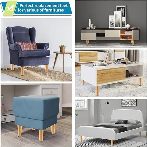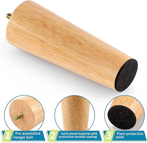 Gambe per Mobili in Legno Massello 15CM - Set da 4 Oblique per Divani, Cassettiere e Armadietti in Stile Metà Secolo