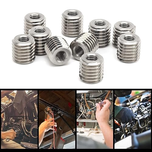 Inserti Filettati Strumento di Riparazione in Acciaio Inossidabile, Dado di Riduzione Maschio Femmina 10 Pezzi, per Riparazione Filettatura, Filettatura Femmina M6x1,0 Mm,