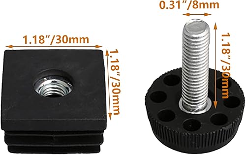 BQLZR 30mmx30mm M8 Filo nero in plastica per mobili da tavolo Spina da gamba Fustellatura Tappi per tappi Inserti con regolazione del filo per tubo quadrato Tubo confezione da 10