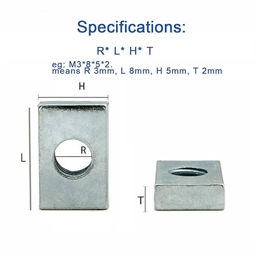 10/50 pz Dado Quadrato M3 M4 M5 M6 M8 Acciaio Al Carbonio Zincato Sottile Dadi Rettangolari Blocco Cursore per Profilo In Alluminio accessorio (Color : 50pcs_M4-12x8x2mm)