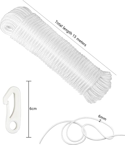 Corda Bandiera Bianca,Corda di Bandiera in Nylon,Banner Rope Con Ganci,Corda Multifunzionale Bianca,Adatto Per Campi Per Esterni a Vestiti Asciutti (15M)