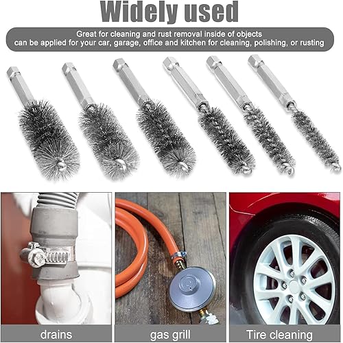 Spazzola per fori in acciaio inossidabile, Spazzole a Filo per Cilindri Acciaio Inox Spazzola, Spazzole per Tubi da Forno, Spazzola Cilindrica Con Filo D'acciaio , 6 Pezzi (6)