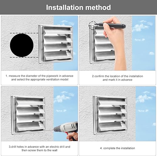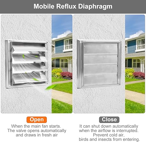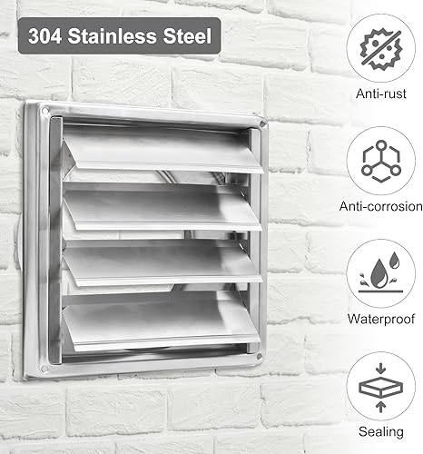 Valvola di ritorno, 150 mm, griglia di ventilazione con valvola antiritorno, griglia di protezione dalle intemperie, in acciaio inox con lamelle mobili, griglia di ventilazione per