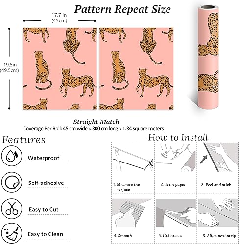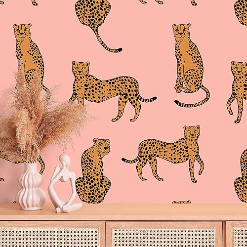 VEELIKE Carta da Parati Leopardo Rosa Carta da Parati Adesiva Muro Carta da Parati Ghepardo Esotica 44,5 cm x 300 cm Carta Adesiva per Mobili Fantasia Animali Rosa Cameretta Bimba Bagno Rimovibile