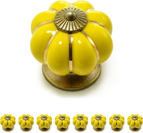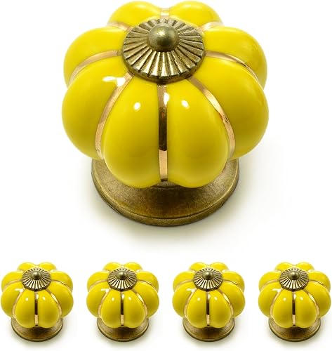 Set di pomelli per mobili a forma di corona, in porcellana, con decorazione in bronzo anticato, stile vintage, shabby chic, per mobili, armadi, cassetti, Giallo