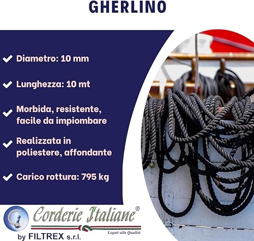 006004226 Gherlino cima per ormeggio, diametro 10 mm, 10 metri, Nero