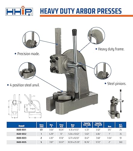 Hhip Heavy Duty Arbor Press (più opzioni – 0.5~2 ton Capacity), 0.5 Ton Capacity, 1