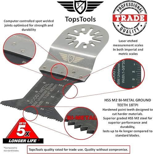 10 x 44 mm TopsTools UN44B_10 Lame da taglio per metalli compatibili con Bosch Fein (non StarLock) Makita Milwaukee Einhell Ergotools Hitachi Parkside Ryobi Worx Workzone Accessori multifunzione
