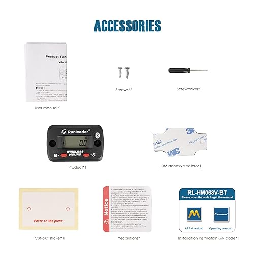 Runleader Digital Wireless Vibration attivato Contaore, Data Remote Bluetooth Manage, Batteria sostituibile per tosaerba Trattore Generatore Compressore Motosega Moto ATV (1)