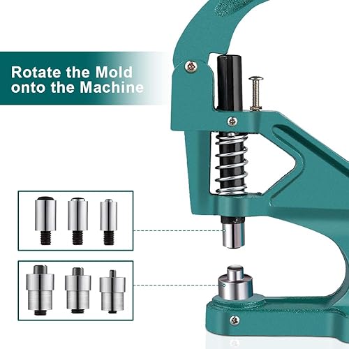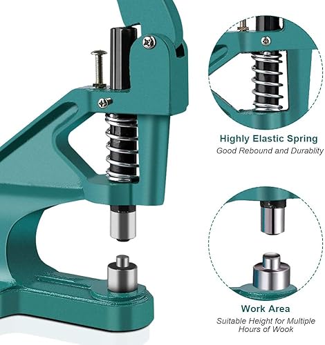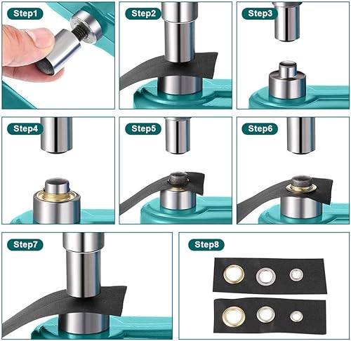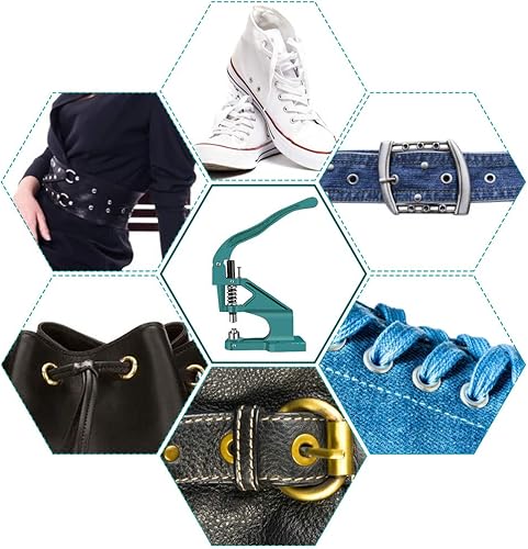 Pressa a mano Grommet Machine, Heavy Duty Grommet Machine Pressa a mano, Punzonatrice occhielli Pressa rivetti 3 set di punzoni e 900 occhielli 6 mm / 10 mm / 12 mm, ghisa, potente molla di ritorno
