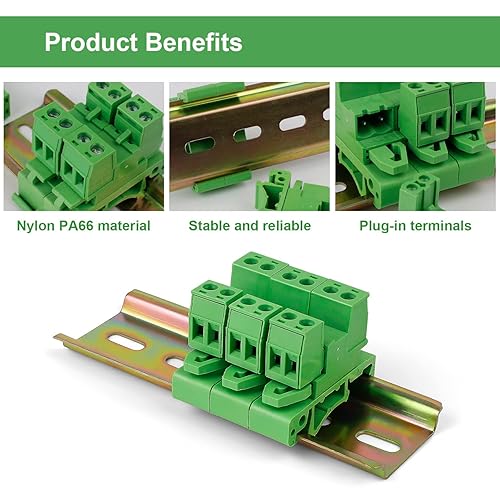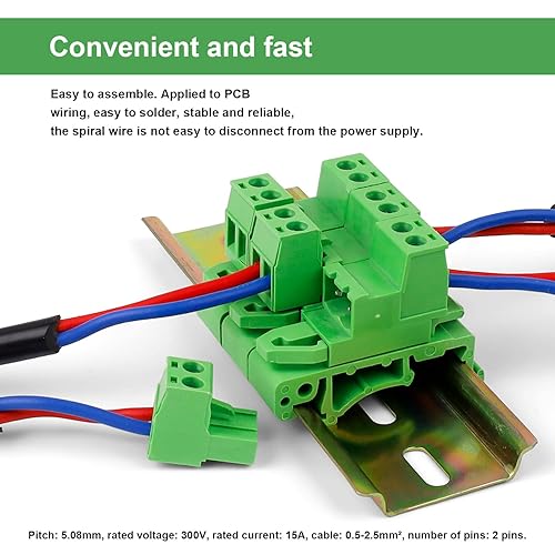 Connettori per Morsettiera PCB a 2 Pin con 10 cm Guida Din- LNSYSNS Morsettiera Plug in Vite, Tensione 300V, Corrente 15A - Connettori per Morsettiera a Vite PCB con Passo 5,08 mm