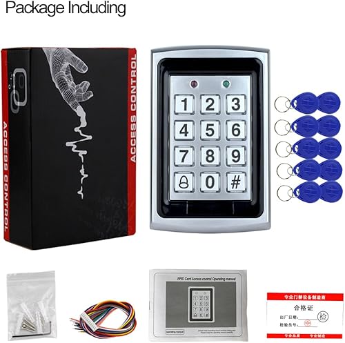 Lettore di schede EM con tastiera di controllo accessi in metallo RFID con 10 portachiavi EM4100 + copertura protettiva impermeabile per sistema di controllo accessi porta (Keypad+10 keys)
