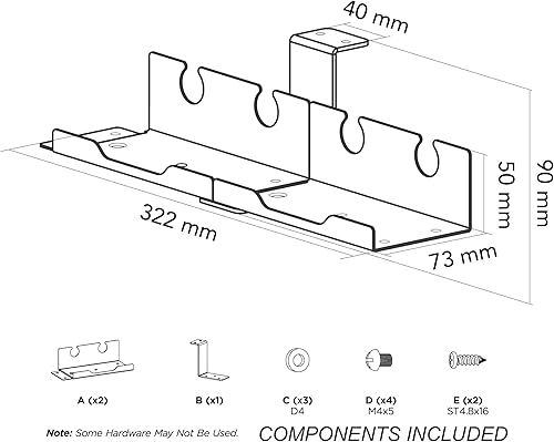 Electraline 71730 Portacavi Sotto Scrivania, Vassoio 590X131X74mm per Gestione de Cavi Elettrici, Organizzatore di Cavi Desk, Canalina Passacavi Scrivania Fili Management Ideale per Casa & Ufficio