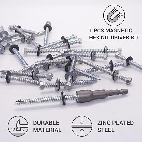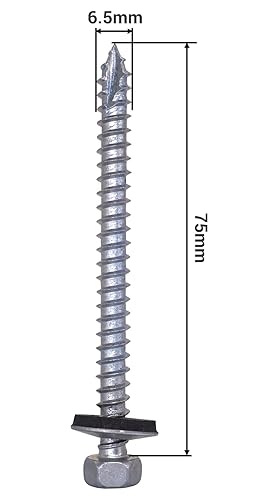 SKIR'CO (100 pezzi) Viti zincate per tetti, 6,5 x 75 mm Viti autofilettanti con rondelle EPDM, testa esagonale