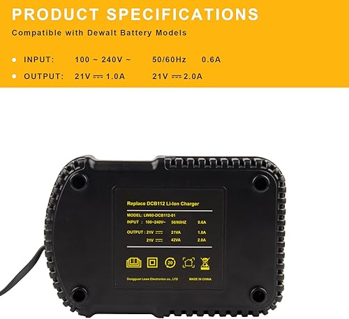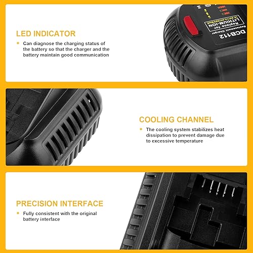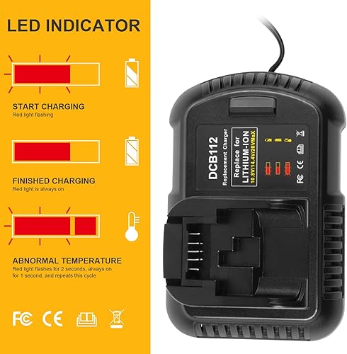 ASUNCELL Caricatore rapido agli ioni di litio da 2,0 A, per batteria DeWalt da 12 V-20 V, per DeWalt DCB112 DCB115 DCB203 DCB204 DCB205 DCB206 DCB201 DCB120 DCB127