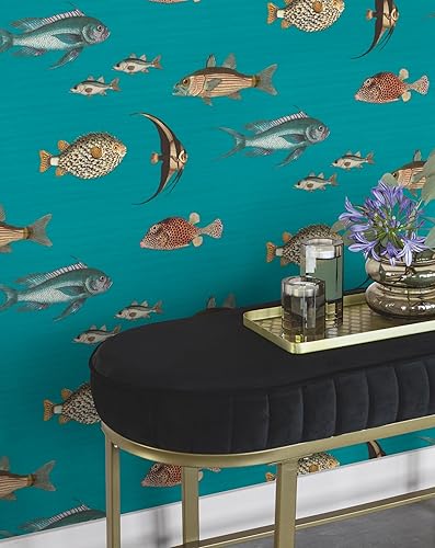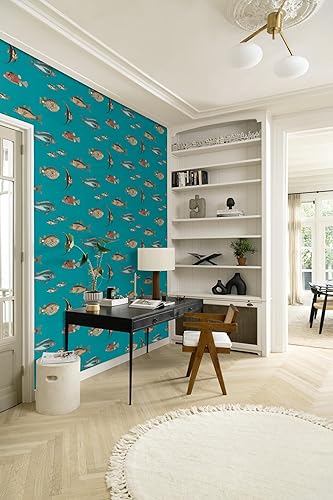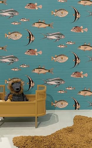 Rasch Carta da parati 553536 - Carta da parati in tessuto non tessuto turchese con topik e pesci colorati, 10,05 m x 0,53 m (lunghezza x larghezza)