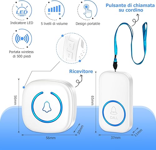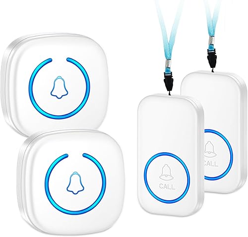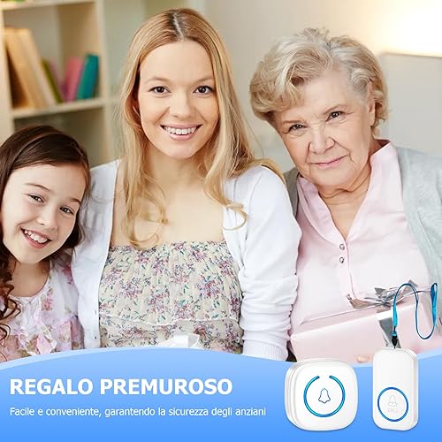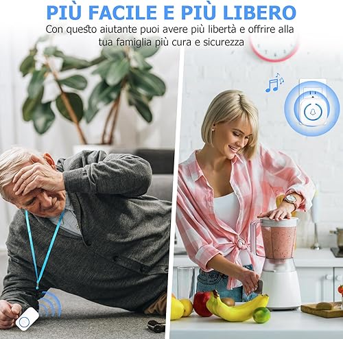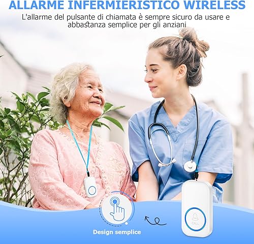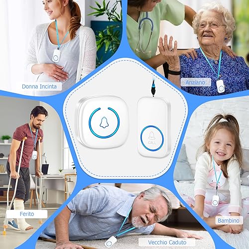 Allarme Persone Agee, pulsante di chiamata di emergenza per gli anziani, campanello per malati con vibrazione, luce e suoneria (2 trasmettitore + 2 ricevitore)