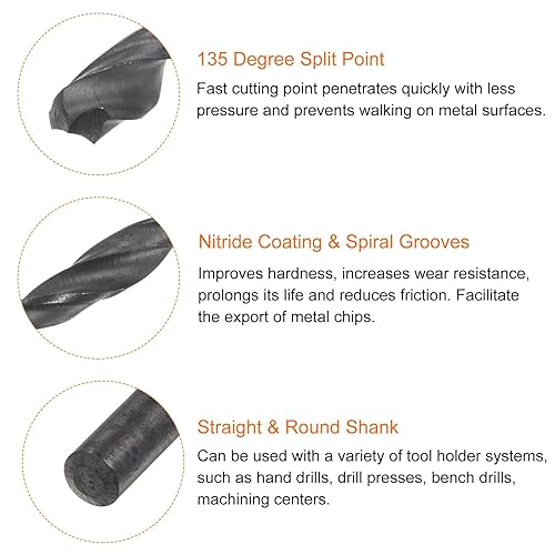 10pz Punte da Trapano Jobber 3,6mm (1/7') in Acciaio ad Alta Velocità Rivestito in Nitruro (HSS) 4241 per Acciaio Inossidabile Rame Metallo Legno Plastica, Nero