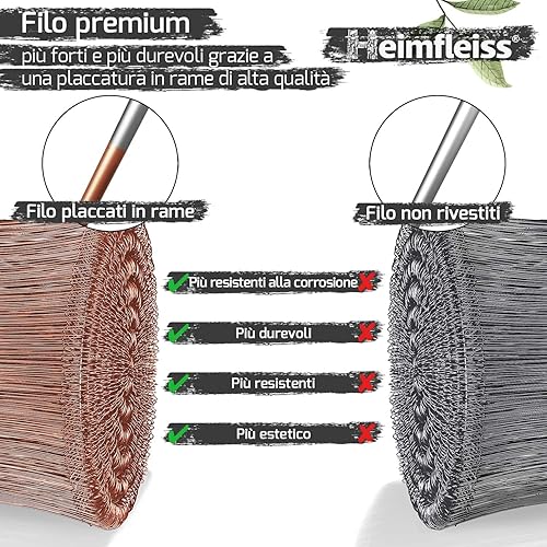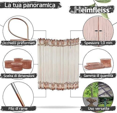 Filo di ferro ramato 1,0 x 100-160 mm (500 pezzi) - filo zincato rivestito di rame - legacci con occhiello per pinze per tiralegacci - legacci per chiusura sacchi