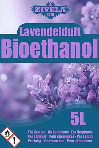 Bioetanolo 96,6% 5 l, profumo di lavanda di alcool biologico 96,6% 5 l, bioetanolo per camino, caminetto, camino a bioetanolo, profumo di lavanda, combustione pulita, senza fumo, fiamma vivida e