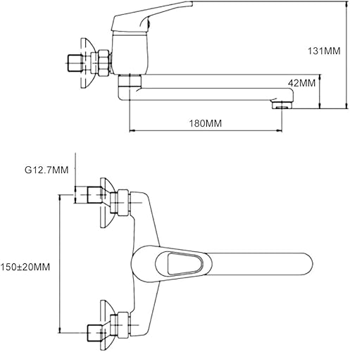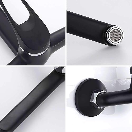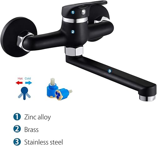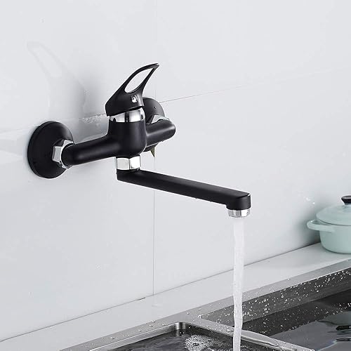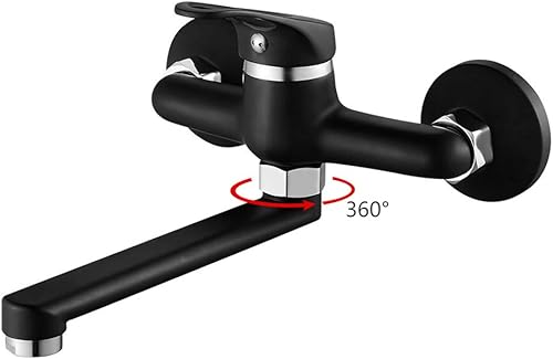 Rubinetto da cucina a parete, bocca lunga miscelatore per lavello rubinetto girevole a 360 ° in acciaio inox monocomando per lavello cucina bagno (nero)