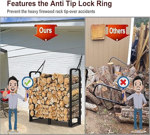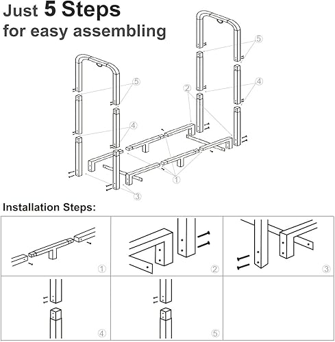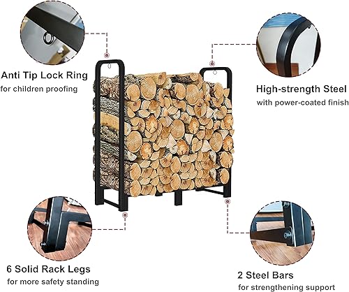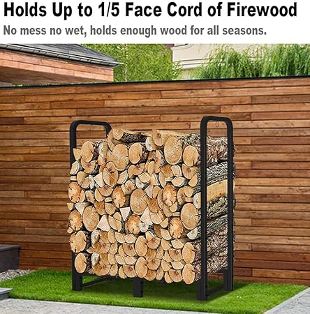 Artibear Portalegna da ardere per esterni, 2,4 m, resistente, per camini interni, in metallo e legno, nero opaco