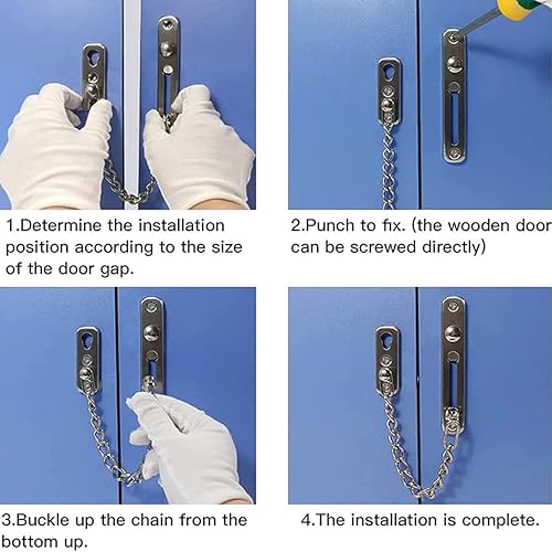 Zhioudz Catena di Sicurezza Della Porta,Catena Porta Antifurto,Blocco Catena Porta,Acciaio Inossidabile Catena di Sicurezza,per Porte da Giardino, Porte in Legno, Porte per Hotel