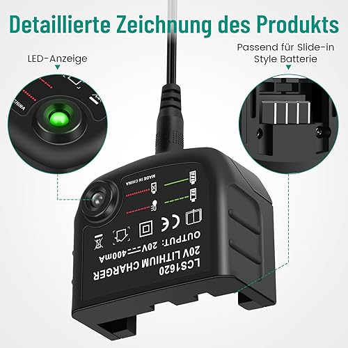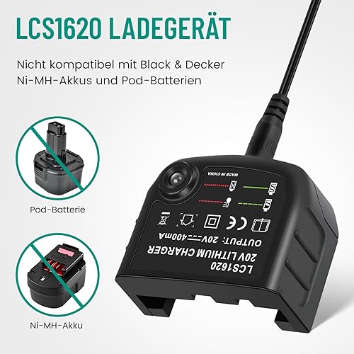 Caricatore rapido da 18 V/20 V, compatibile con Black & Decker, ASUNCELL per Black & Decker BL2018 BL2018-XJ BL1518 LBXR20-OPE LBXR20 LBX20 LBX4020 LB2X4020 LBXR2020-OPE BL1514 LBXR16