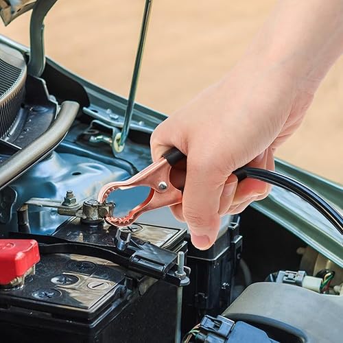 4 morsetti a coccodrillo per auto, 50 A, grandi morsetti per batteria per cavo di avviamento, isolati, cavi di avviamento, morsetti con manico in plastica isolata, morsetti per cavo di