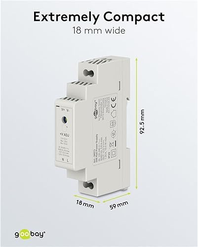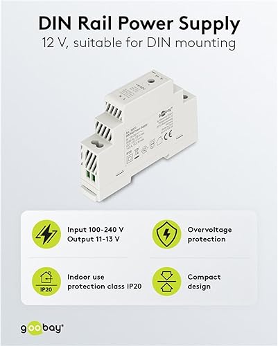 Goobay 59573 - Alimentatore di rete a binario 12 V, trasformatore ideale per il funzionamento di sistemi di sorveglianza e accesso/trasformatore campanello 12 V, citofono/campanello DIN Rail 1,25 A e